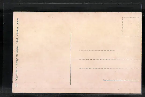 Personenbezogene Daten auf der Rückseite der Karte wurden durch blauen Textmarker unkenntlich gemacht. Die blauen Stellen sind auf die Vorderseite durchgeweicht und wirken sich negativ auf das Postkartenfoto aus