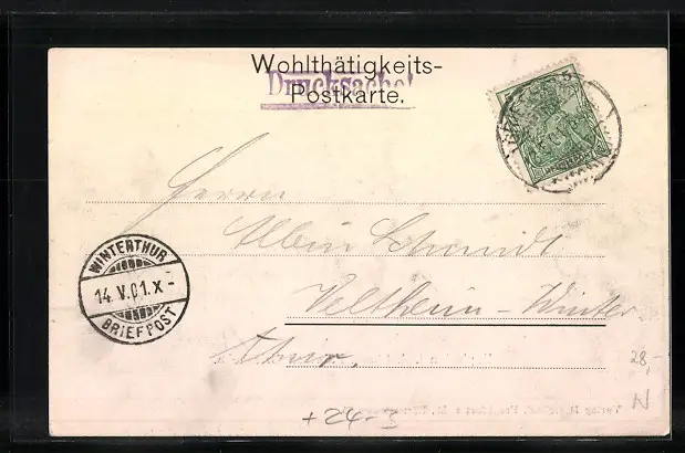 alte Ansichtskarte, gelaufen 1901, Oberflächenschaden, guter Zustand