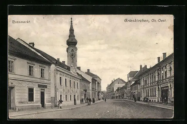 AK Grieskirchen, Rossmarkt mit Geschäften