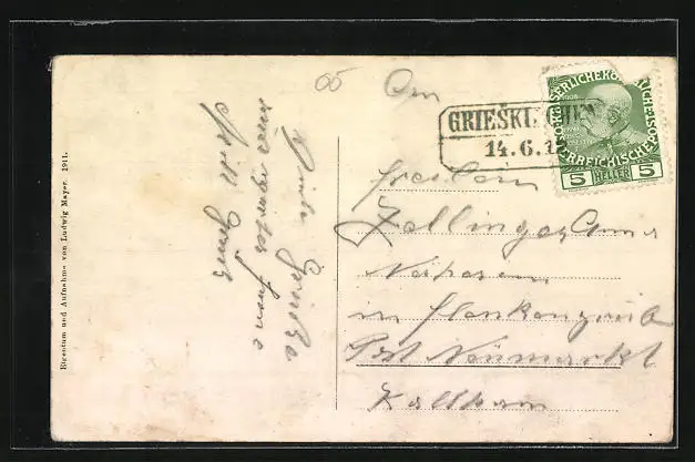 alte Ansichtskarte, gelaufen 1912, Briefmarke tw. entfernt, rückseitig Oberflächenschaden, guter Zustand
