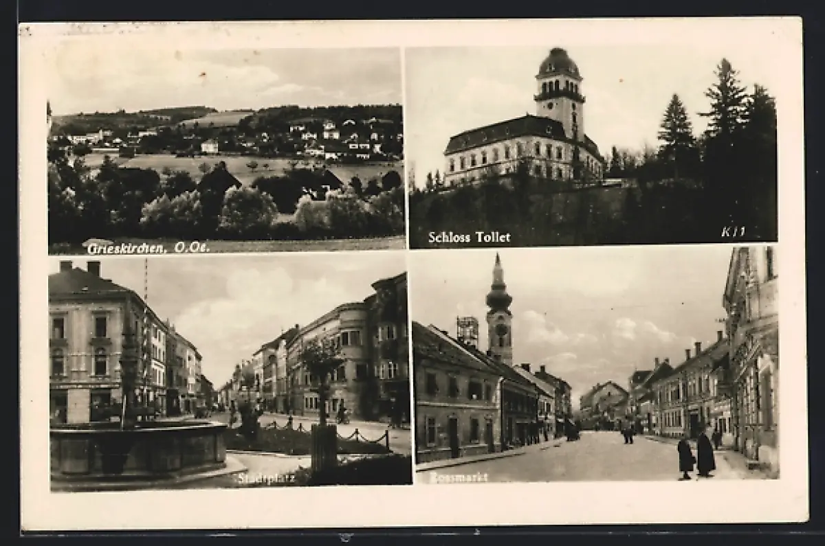 AK Grieskirchen, Schloss Tollet, Rossmarkt, Stadtplatz, Panorama