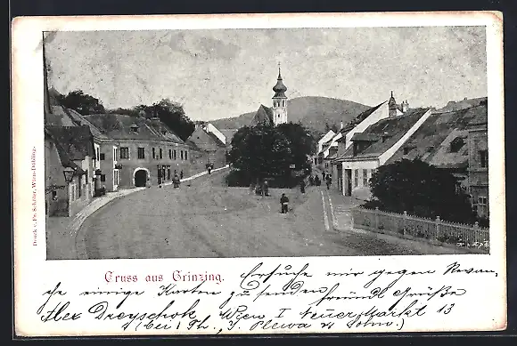 AK Grinzing, Ortspartie mit Blick zur Kirche