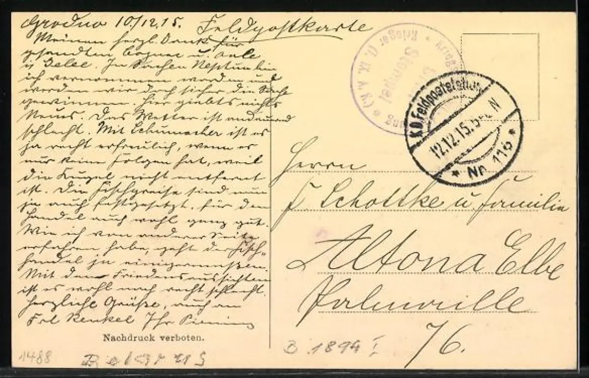alte Ansichtskarte, gelaufen 1915, Stempelspur, guter Zustand