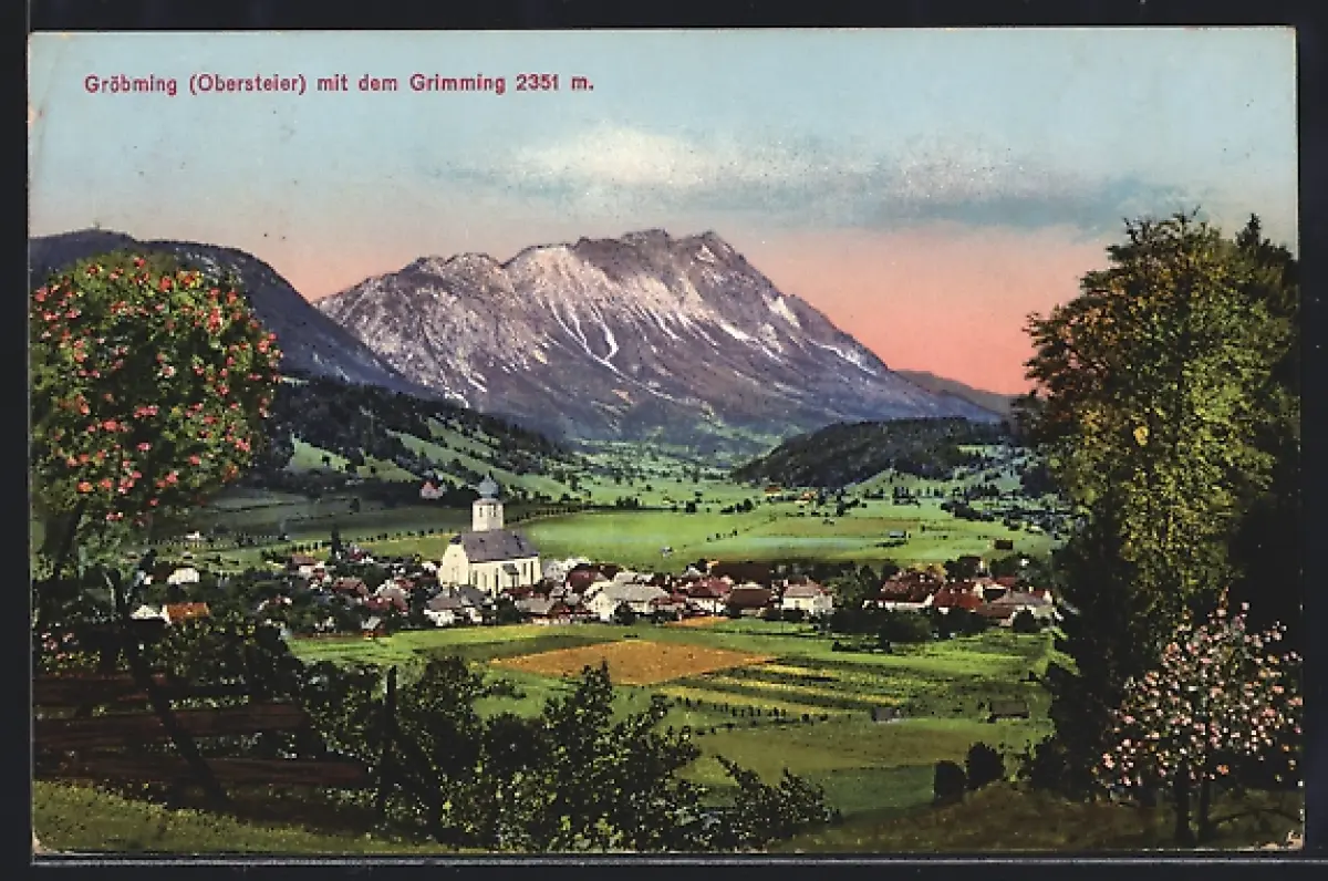 AK Gröbming /Obersteier, Ortsansicht mit dem Grimming
