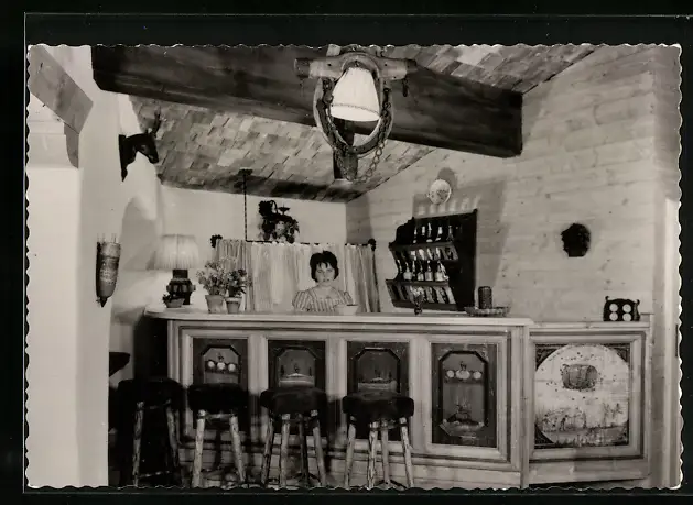 AK Grödig, Selbstbedienungsrestaurant Untersberger Hochalm mit einer Mitarbeiterin