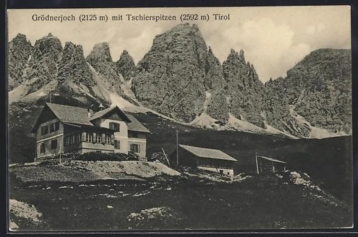 AK Grödnerjoch, Ansicht mit Tschierspitzen