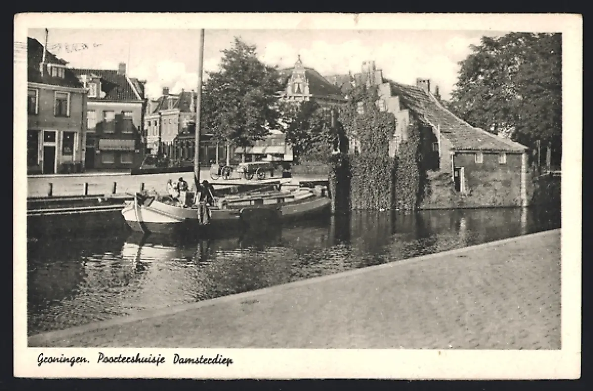 AK Groningen, Poortershuisje Damsterdiep, mit Segelboot