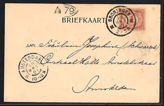 alte Ansichtskarte, gelaufen 1901, Bugspur li. unten, guter Zustand