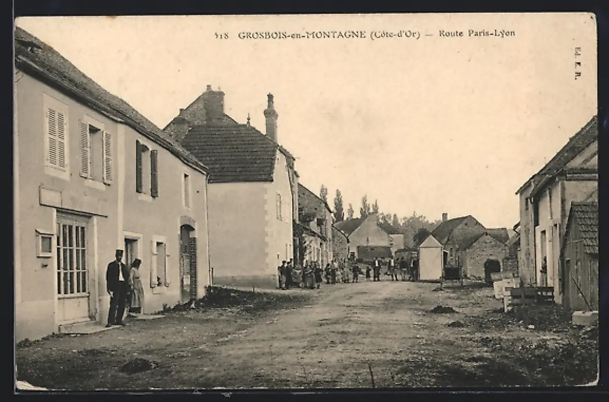 AK Grosbois-en-Montagne /Côte-d`Or, Route Paris-Lyon avec vue sur la rue principale et les maisons anciennes