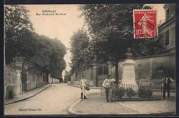 AK Groslay, Rue Ferdinand Berthout avec monument et passants