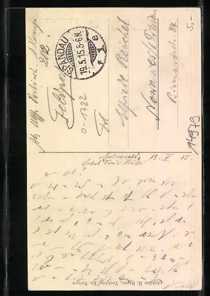 alte Ansichtskarte, gelaufen 1915 als Feldpost, Eckknick links oben, guter Zustand