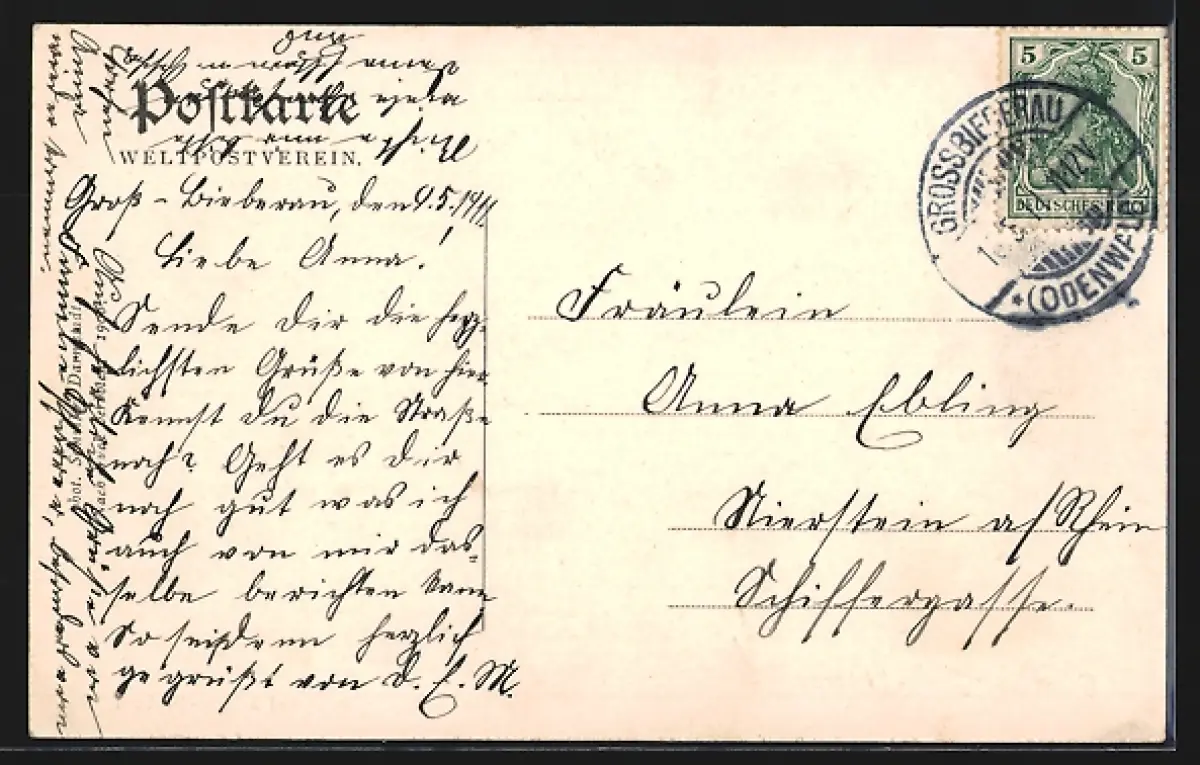 alte Ansichtskarte, gelaufen 1911, Stempelspur, guter Zustand