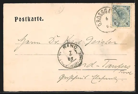 alte Ansichtskarte, gelaufen 1903, Stempelspur, guter Zustand