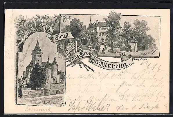 AK Gross-Sachsenheim, Blick zur Kirche, Ansicht vom Schloss