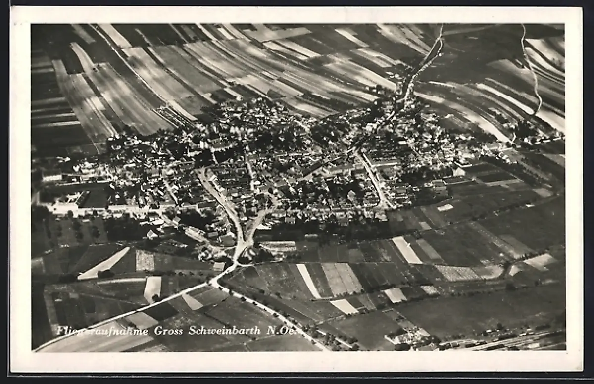 AK Gross Schweinbarth /N. Oe., Teilansicht, Fliegeraufnahme
