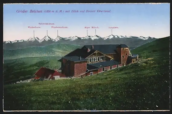 AK Grosser Belchen, Haus in den Bergen mit Blick auf das Berner Oberland