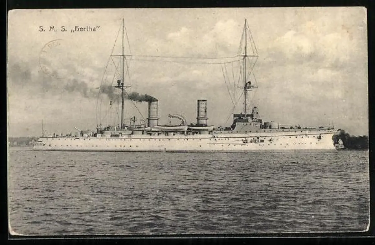 AK Grosser Kreuzer SMS Hertha vor Küste, Kriegsschiff