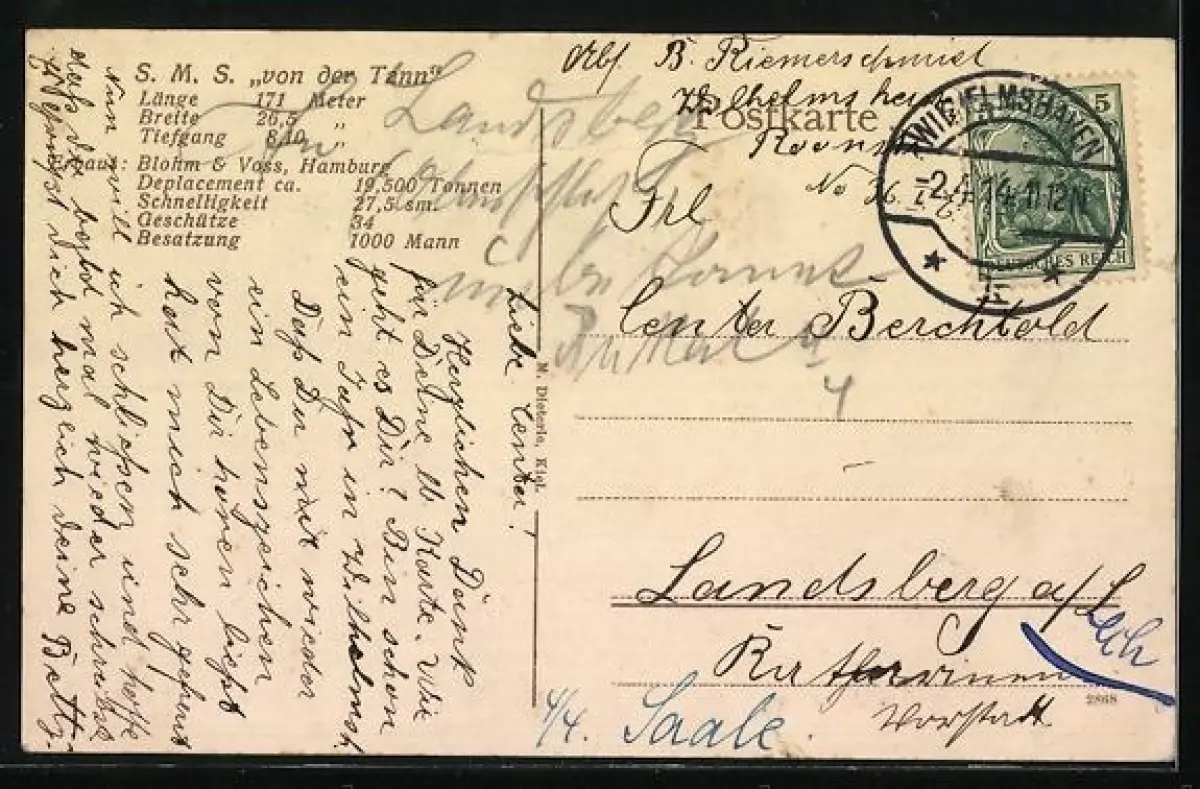AK Grosser Kreuzer Von der Tann in Fahrt, Kriegsschiff
