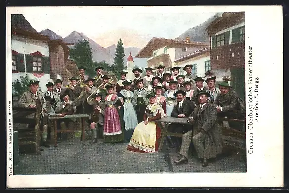 AK Grosses Oberbayrisches Bauerntheater in Trachten mit Instrumenten