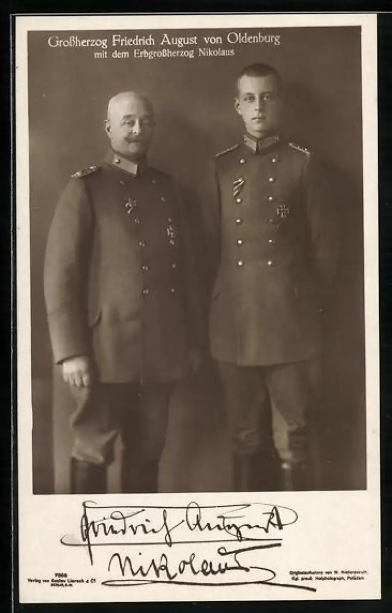 AK Grossherzog Friedrich August von Oldenburg mit dem Erbgrossherzog Nikolaus in Uniform