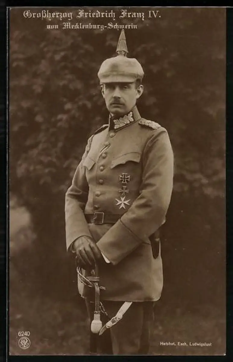 AK Grossherzog Friedrich Franz IV. von Mecklenburg-Schwerin in Uniform m. Pickelhaube