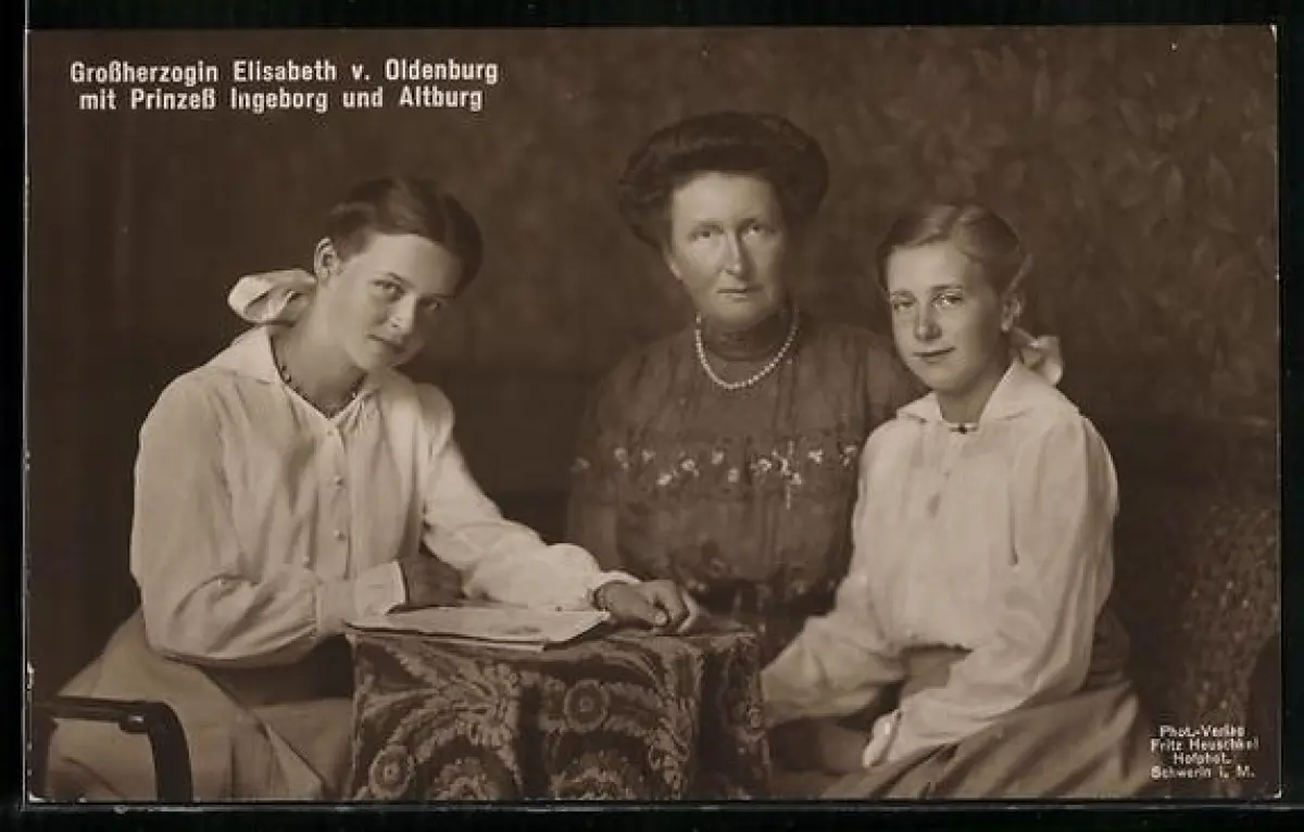 AK Grossherzogin Elisabeth von Oldenburg mit Prinzess Ingeborg und Altburg