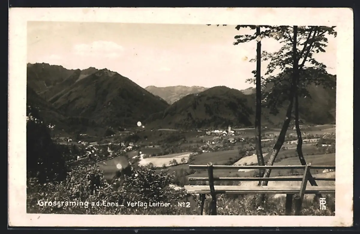 AK Grossraming a. d. Enns, Panorama mit Bergen