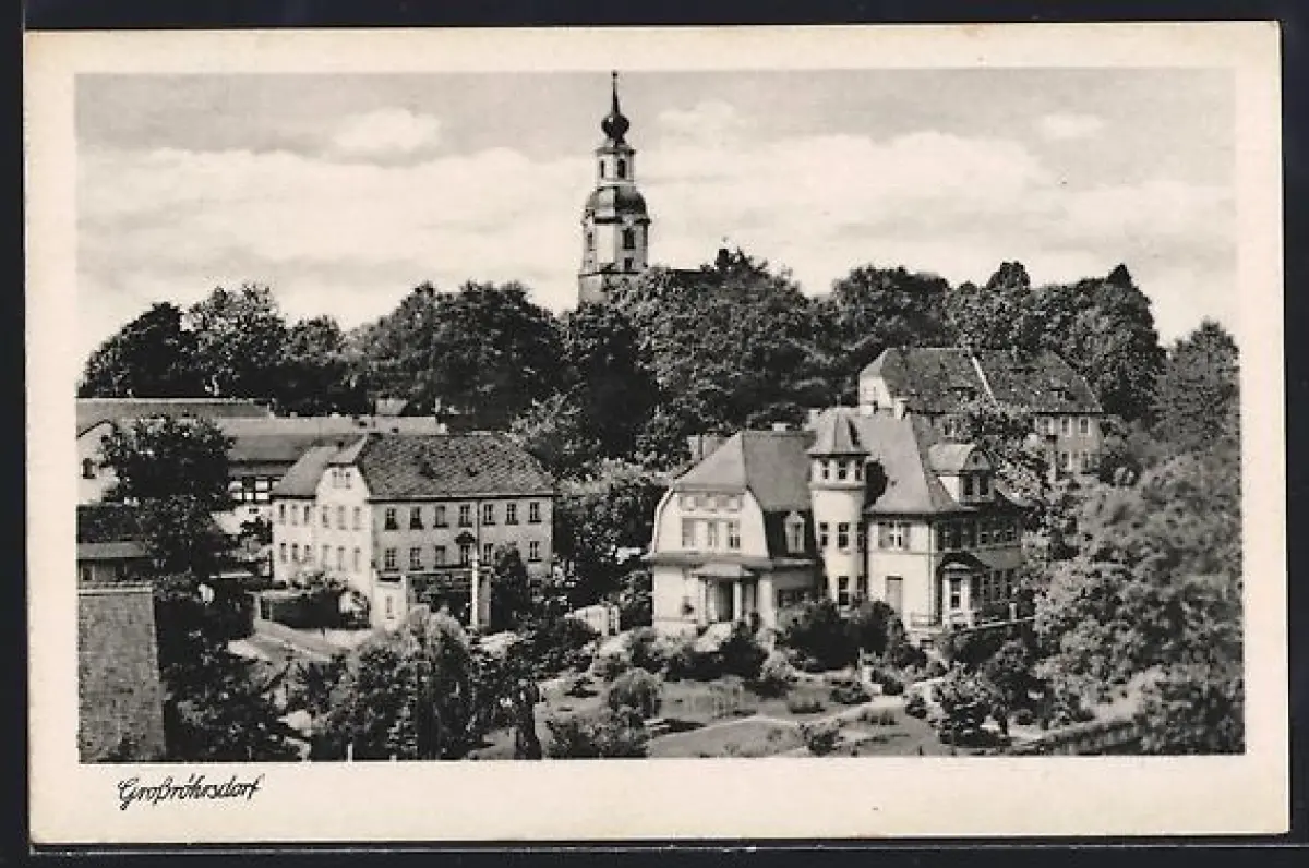 AK Grossröhrsdorf, Ortsansicht mit Kirche und Villa