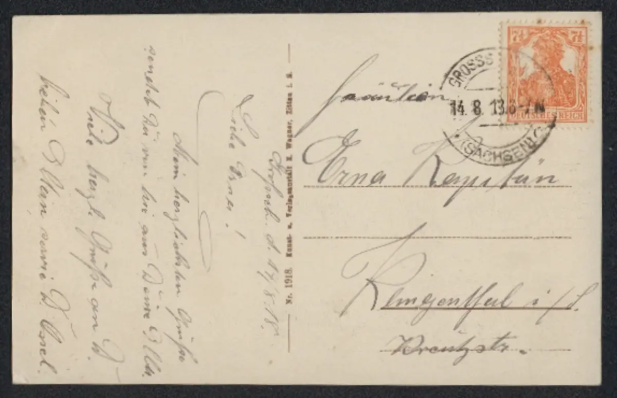 alte Ansichtskarte, gelaufen 1918, Eckknick unten rechts, guter Zustand