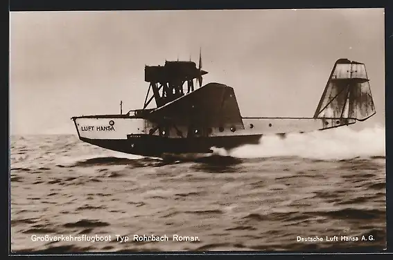 AK Grossverkehrsflugboot Typ Rohrach Romar rast übers Wasser, Deutsche Luft Hansa