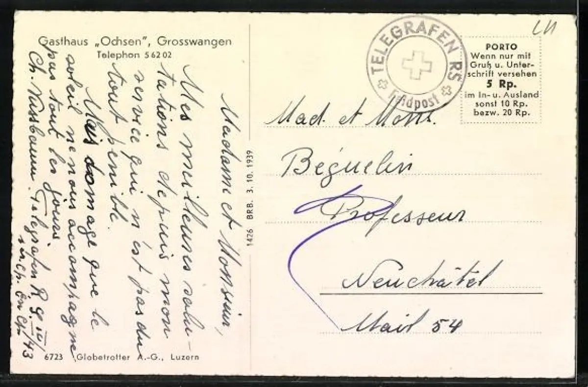 AK Grosswangen, Gasthaus Ochsen mit Strasse, Flagge