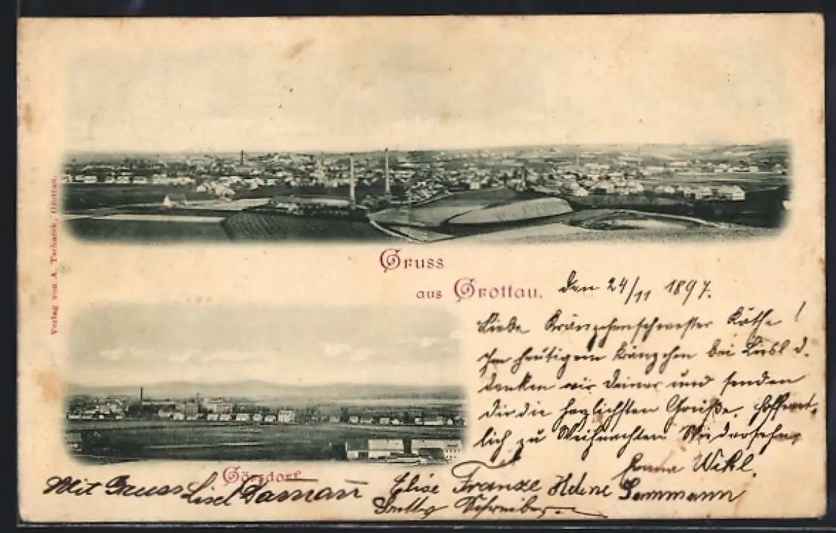 AK Grottau, Totalansicht des Ortes, Ansicht von Görsdorf