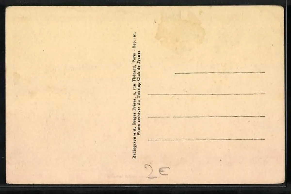 Personenbezogene Daten auf der Rückseite der Karte wurden durch blauen Textmarker unkenntlich gemacht. Die blauen Stellen sind auf die Vorderseite durchgeweicht und wirken sich negativ auf das Postkartenfoto aus