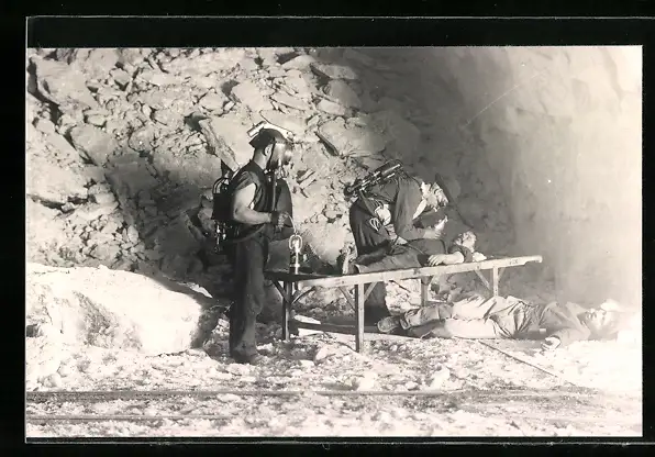 AK Grubenwehr rettet verletzte Bergleute in einer Grube