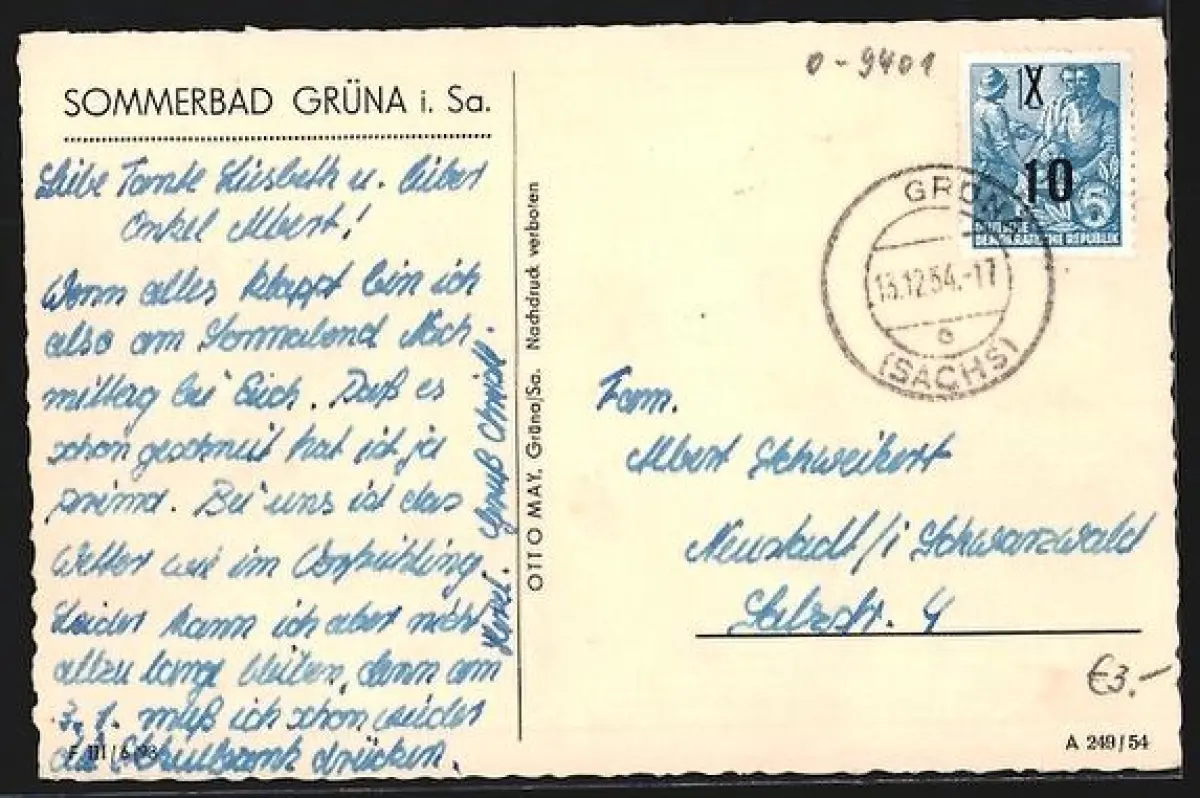 alte Ansichtskarte, gelaufen 1954, guter Zustand