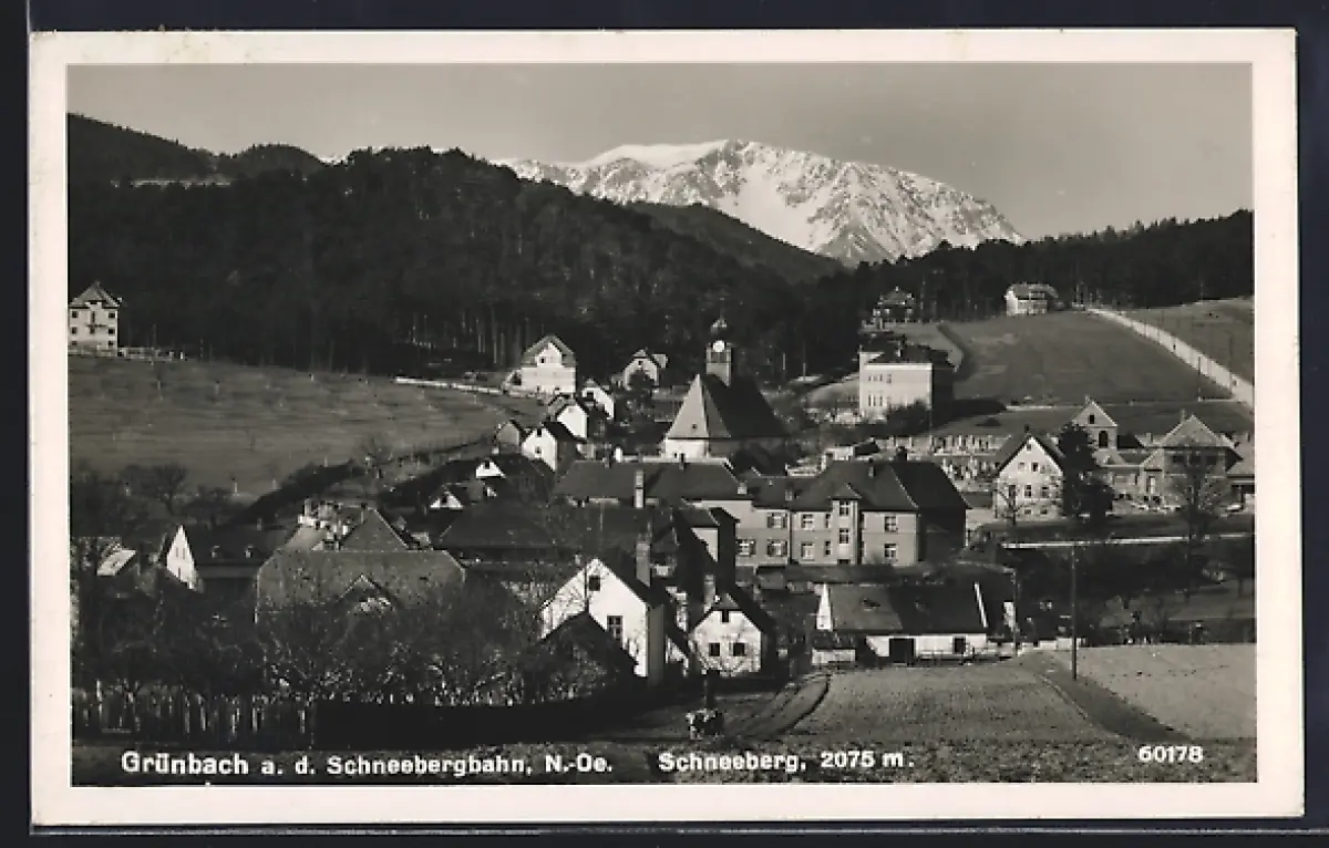 AK Grünbach a. d. Schneebergbahn, Ortsansicht aus der Vogelschau