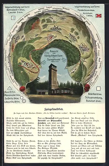 AK Grünhain-Beierfeld, Aussicht vom König Albert-Turm im Spiegelwald