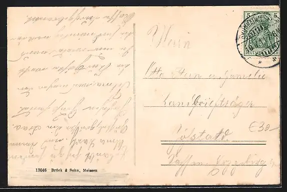 alte Ansichtskarte, gelaufen 1911, Stempelspur, guter Zustand