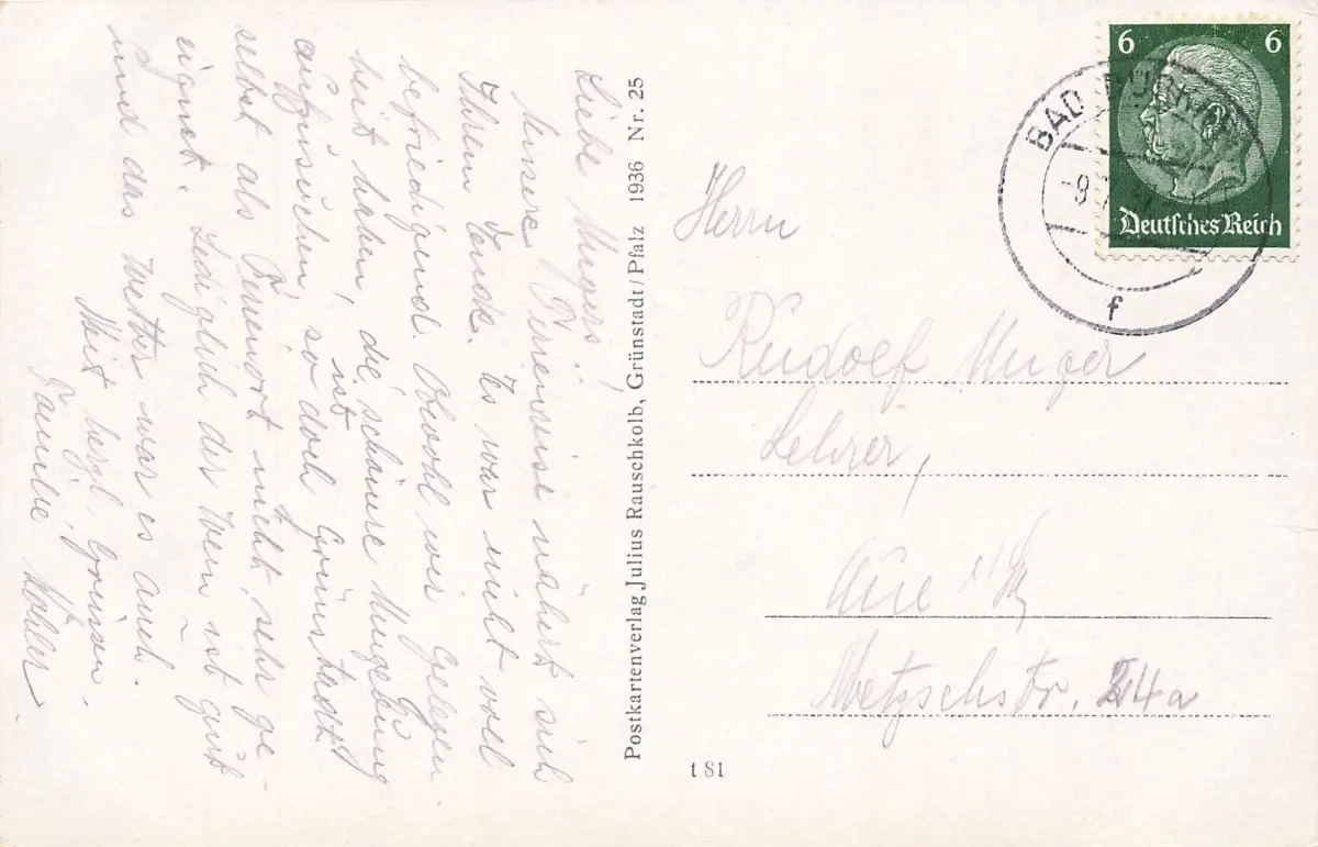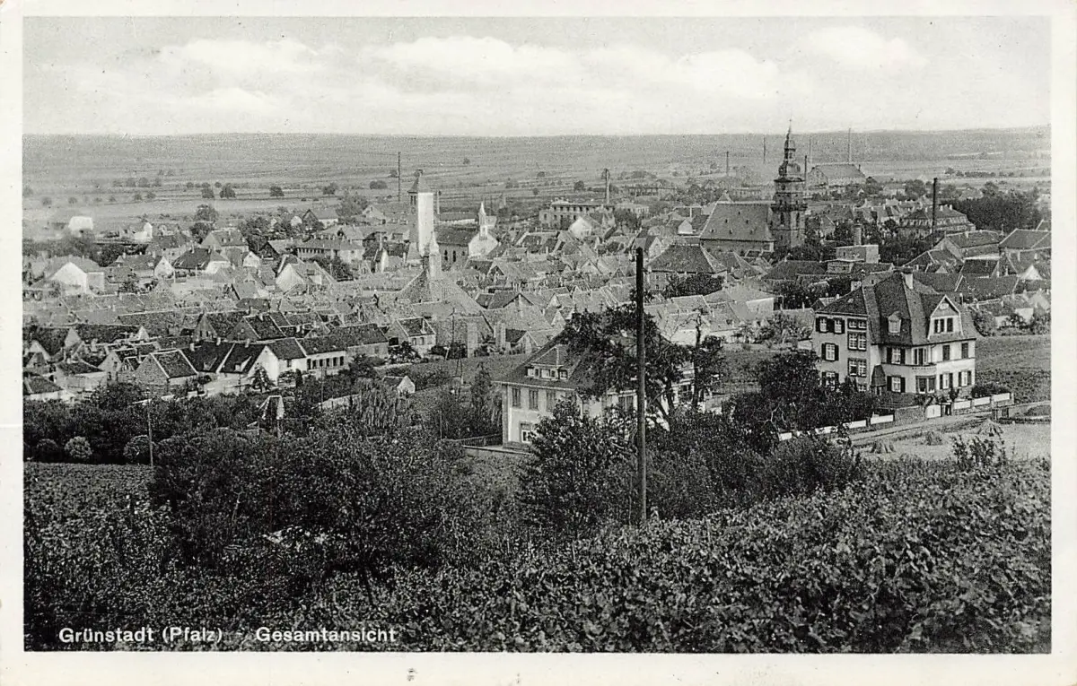 AK Grünstadt Gesamtansicht Kirche Rheinland-Pfalz 1937 gelaufen Postkarte