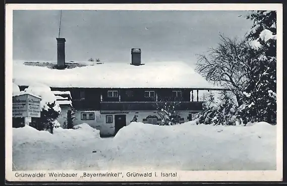 AK Grünwald i. Isartal, Gasthof Weinbauer Bayernwinkel im Winter