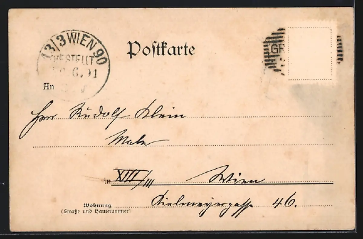 alte Ansichtskarte, gelaufen 1901, Briefmarke entfernt, Stempelspur, guter Zustand
