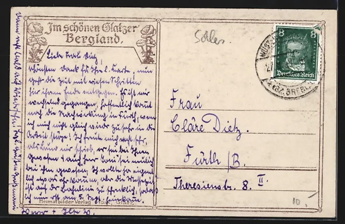 alte Ansichtskarte, gelaufen, Stempelspur, guter Zustand