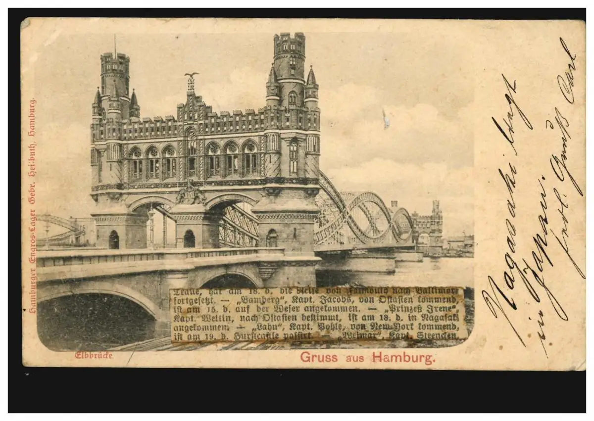 AK Gruss aus Hamburg: Elbbrücke mit Historientext, 21.12.00 nach EBSTORF 21.12.