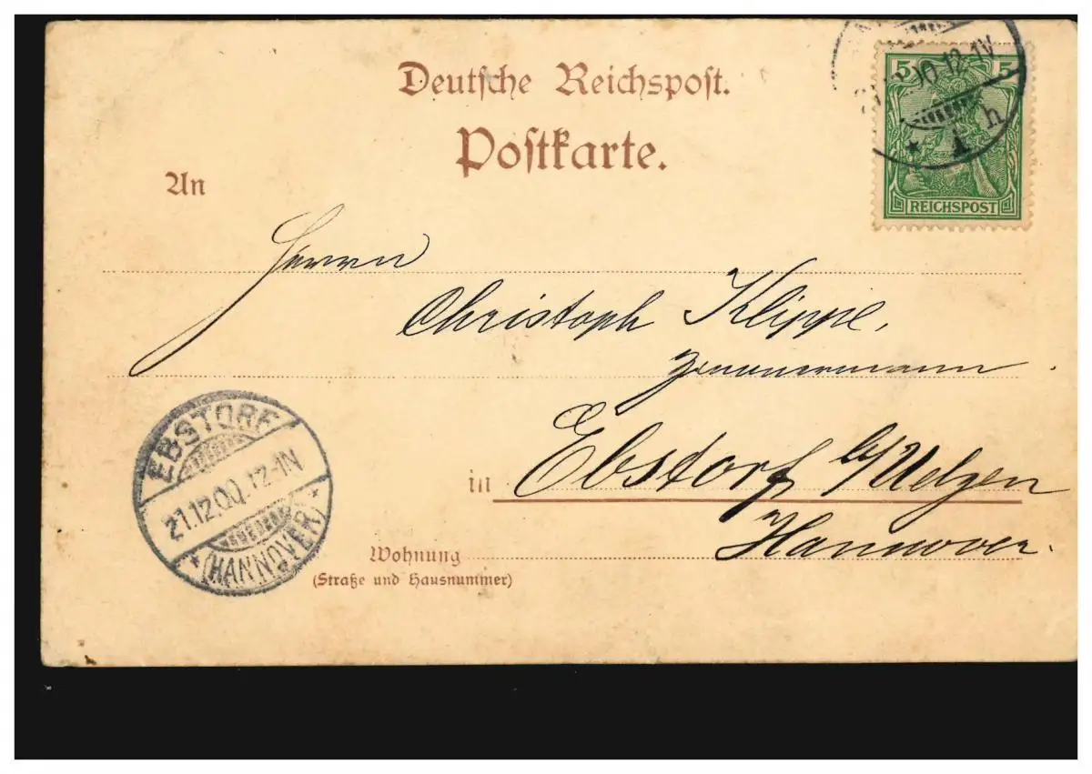 Hamburger Engros-Lager Gebrüder Heilbuth, Ankunftsstempel EBSTORF (HANNOVER) 21.2.1900
