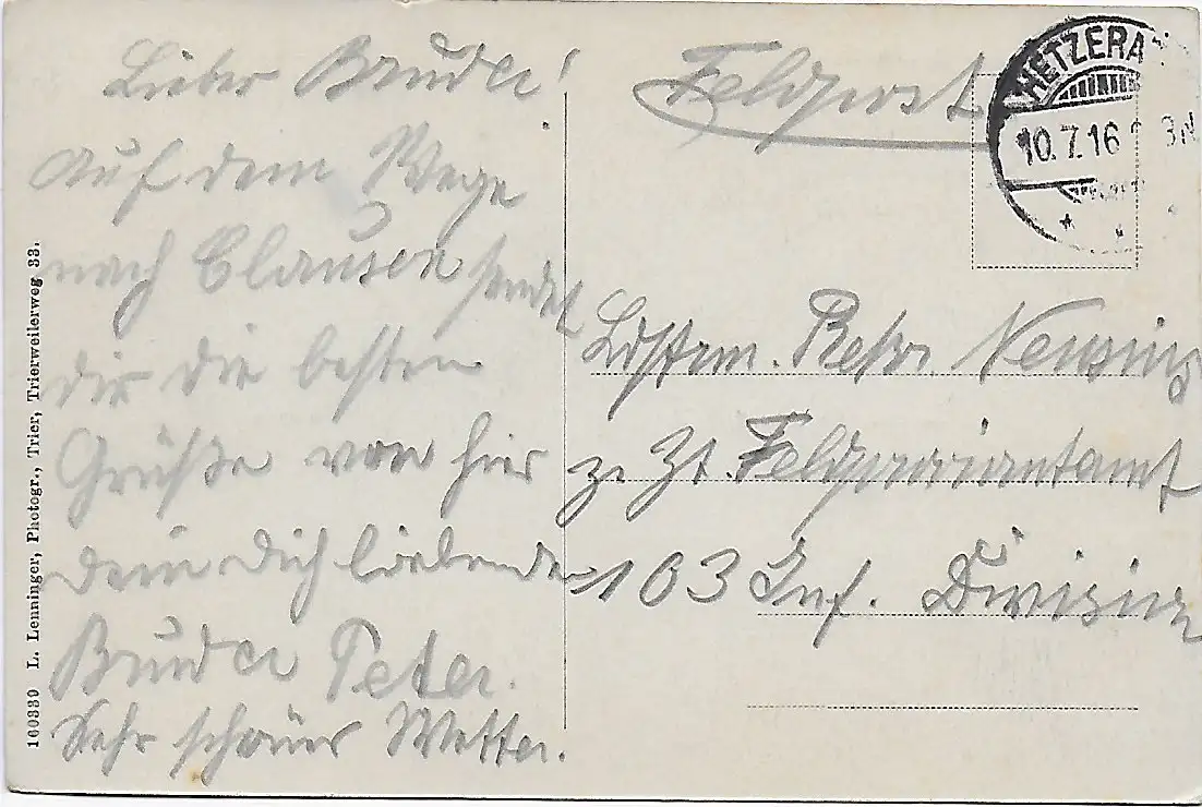 AK: Gruss aus Heidweiler, 1916 als Feldpost