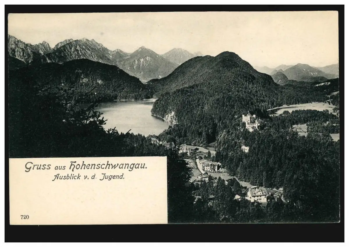 AK Gruss aus Hohenschwangau: Ausblick von der Jugend, um 1900, ungebraucht