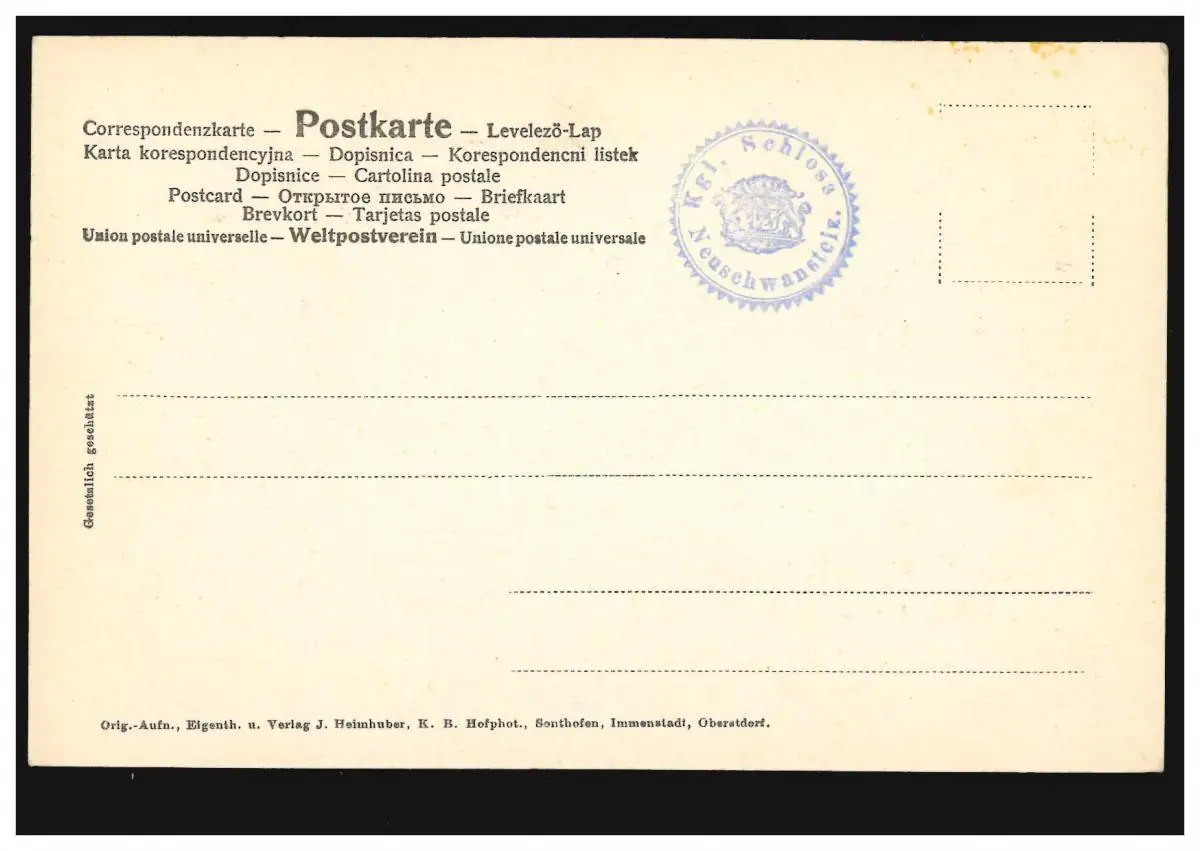 violetter Nebenstempel "Königliches Schloss Neuschwanstein"