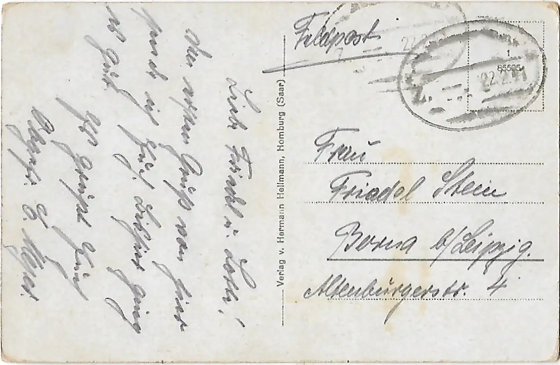 Homburg: Verlag Hermann Hellmann, ca. 1914. Karte, 9,5 x 14,5 cm