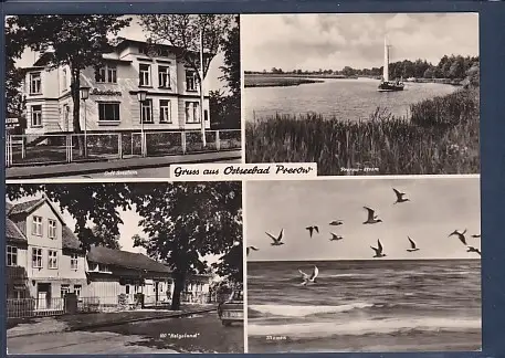 AK Gruss aus Ostseebad Prerow 4.Ansichten Cafe Seestern - Prerow Strom - HO Helgoland - Möwen, nicht gelaufen von ca. 1968