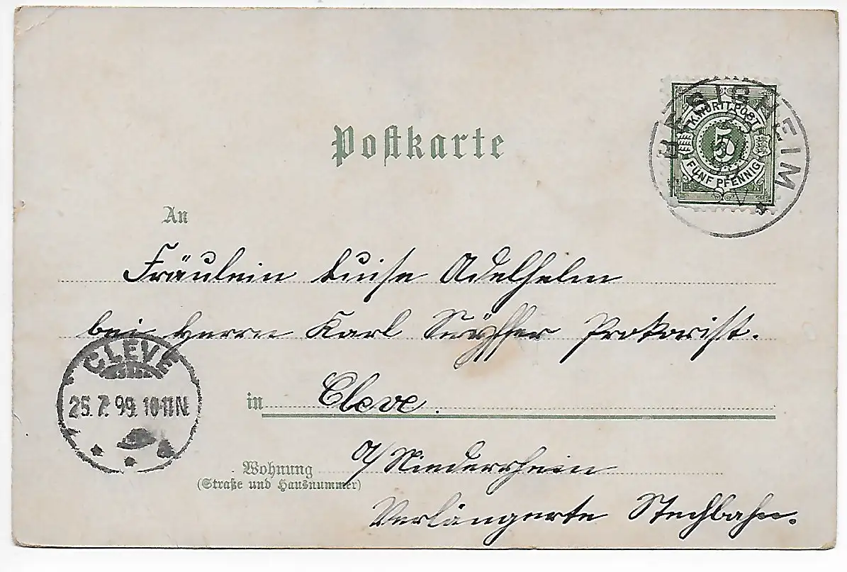 AK Gruss aus Ottmarsheim, 1899 nach Cleve